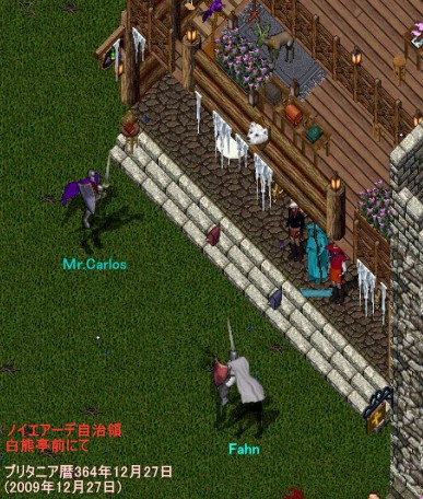 Fahn 氏とユル・ノイエアーデ自治領の白熊亭前にて