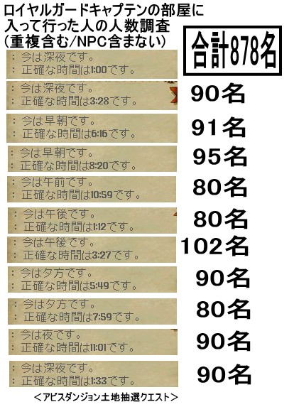ログを確認し、NPCは除外しカウントした結果、878人(重複含む)という